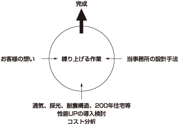- お客様の考え方・コスト・趣味・ライフスタイルを尊重しつつお打ち合わせをさせて頂き、考え方を練り上げていきます。